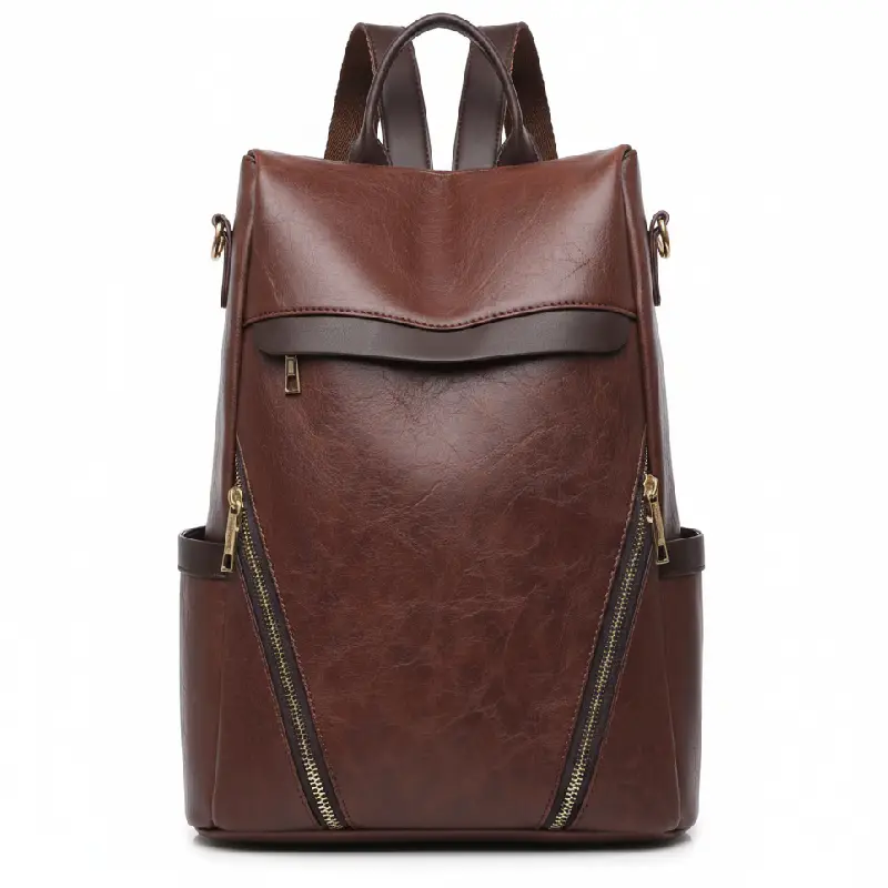 Acabados de Carácter: Herrajes metálicos y cremalleras robustas en un elegante tono bronce antiguo.
