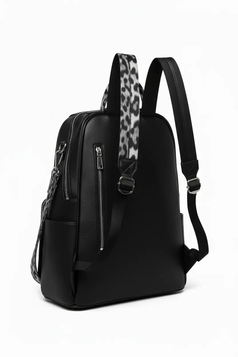 Desata tu lado más audaz con la mochila «Taormina» de Porte Italia. Este diseño de alto impacto combina un suave eco-cuero negro con un llamativo estampado de leopardo en blanco y negro, creando un accesorio inolvidable. Su funcionalidad convertible te permite llevarla como una mochila urbana o un bolso de hombro, asegurando que tu estilo nunca pase desapercibido.